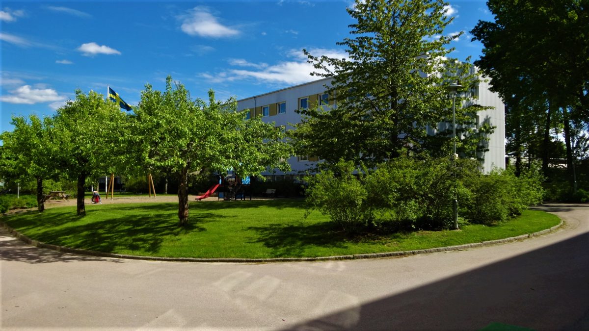 De närmaste omgivningarna karaktäriseras av låga hus bland många små grönområden med stora tallar och ekar. Trafiken går på ett par lokalgator utan nämnvärd genomfartstrafik. Cykelbanorna och gångstråken är väl utbyggda.